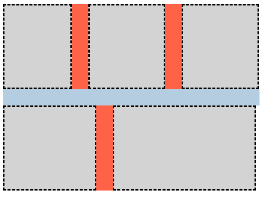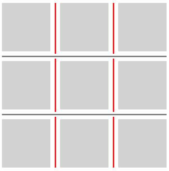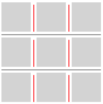 CSS Multicol 1 § 4 Column Gaps and Rules allows for rules to be drawn between columns in a multicol container. This specification expands upon the column-rule-width, column-rule-style, and column-rule-color properties, adding equivalents in the row direction, expanding their application to other container layouts, and giving advanced control over where and how gap decorations are painted.