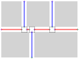 - Entering a gap junction: At the point where a cross gap appears on at least one side of G, create an end segment endpoint.